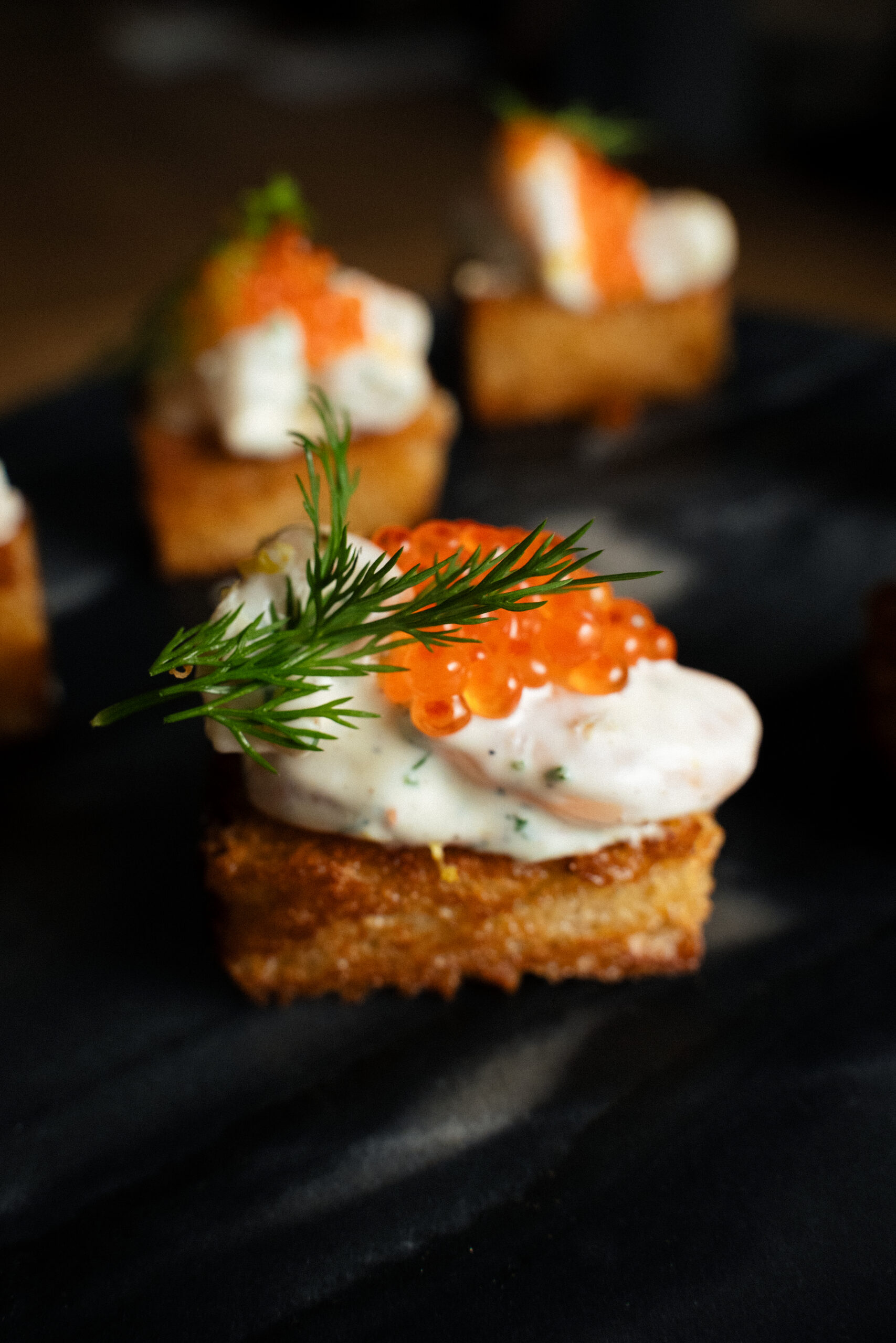 Shrimp skagen salad with trout roe and crispy bread